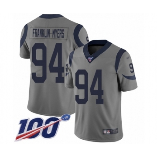 >Youth Los Angeles Rams #94 John Franklin-Myers Limited Gray Inverted Legend 100th Season Football Jersey