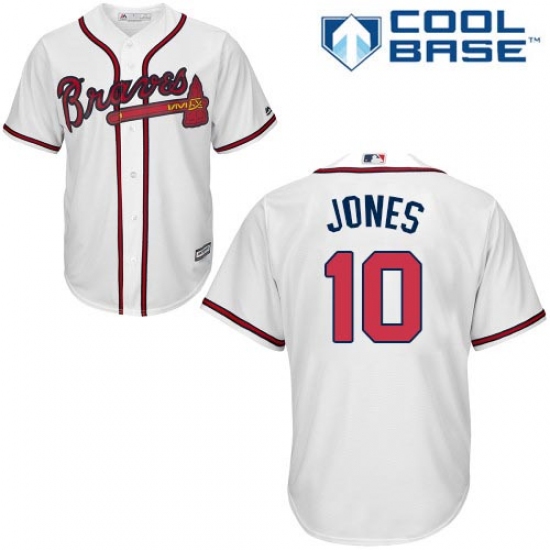 Youth Majestic Atlanta Braves #10 Chipper Jones Authentic White Home Cool Base MLB Jersey