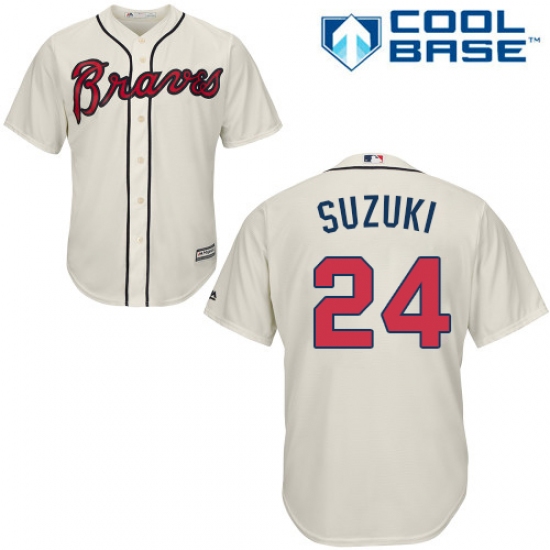 Home>MLB>Atlanta Braves>Kurt Suzuki>Youth Majestic Atlanta Braves #24 Kurt Suzuki Authentic Cream Alternate 2 Cool Base MLB Jersey