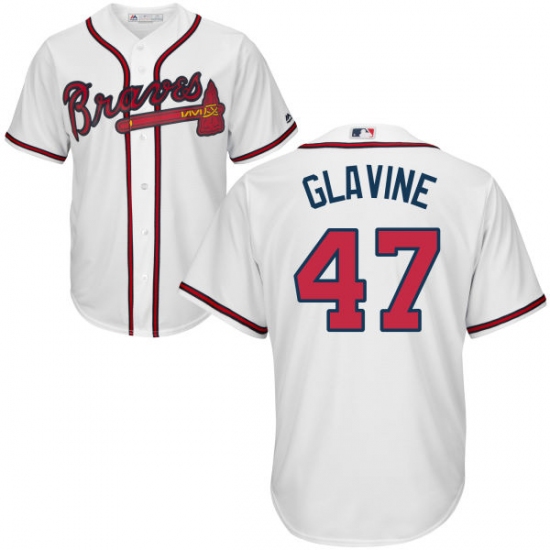 Youth Majestic Atlanta Braves #47 Tom Glavine Authentic White Home Cool Base MLB Jersey