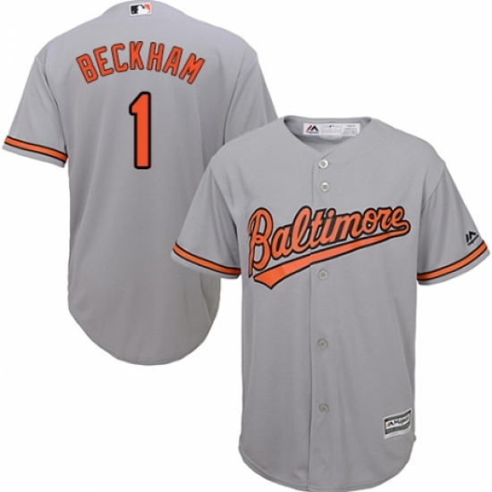 >Youth Majestic Baltimore Orioles #1 Tim Beckham Authentic Grey Road Cool Base MLB Jersey