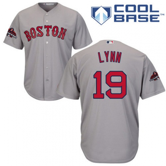 Youth Majestic Boston Red Sox #19 Fred Lynn Authentic Grey Road Cool Base 2018 World Series Champions MLB Jersey