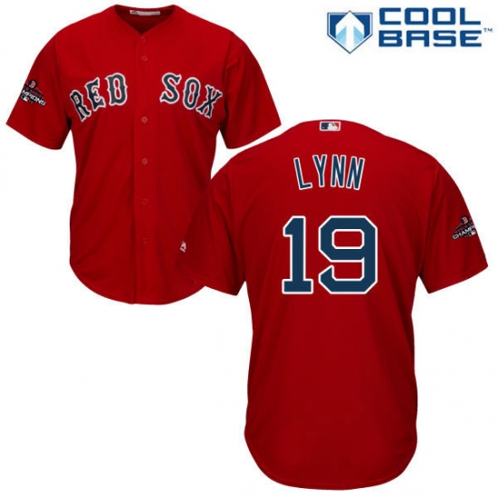 Youth Majestic Boston Red Sox #19 Fred Lynn Authentic Red Alternate Home Cool Base 2018 World Series Champions MLB Jersey