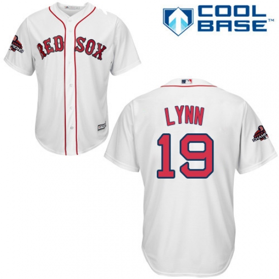 Youth Majestic Boston Red Sox #19 Fred Lynn Authentic White Home Cool Base 2018 World Series Champions MLB Jersey