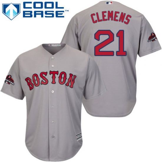 Youth Majestic Boston Red Sox #21 Roger Clemens Authentic Grey Road Cool Base 2018 World Series Champions MLB Jersey