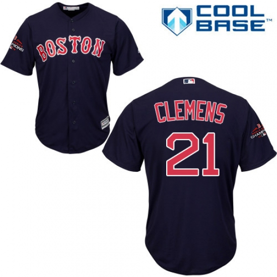 Men's Majestic Boston Red Sox #21 Roger Clemens Navy Blue Alternate Flex Base Authentic Collection 2018 World Series Champions MLB Jersey