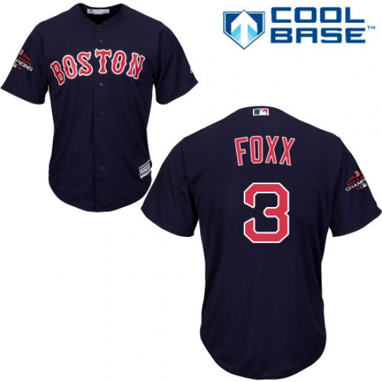 >Youth Majestic Boston Red Sox #3 Jimmie Foxx Authentic Navy Blue Alternate Road Cool Base 2018 World Series Champions MLB Jersey