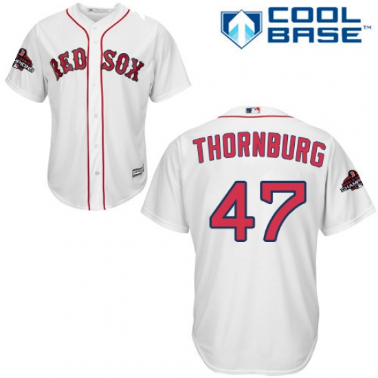 >Youth Majestic Boston Red Sox #47 Tyler Thornburg Authentic White Home Cool Base 2018 World Series Champions MLB Jersey