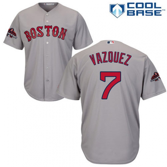 Youth Majestic Boston Red Sox #7 Christian Vazquez Authentic Grey Road Cool Base 2018 World Series Champions MLB Jersey