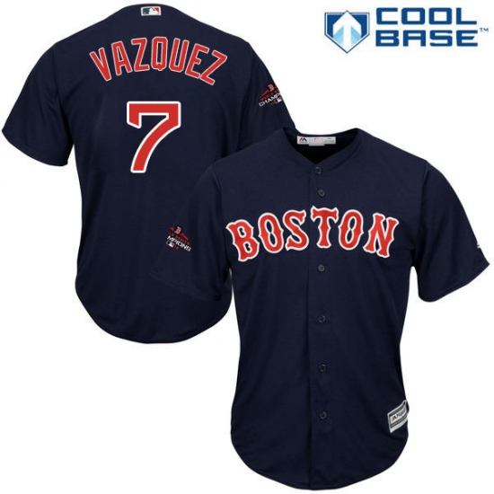 >Youth Majestic Boston Red Sox #7 Christian Vazquez Authentic Navy Blue Alternate Road Cool Base 2018 World Series Champions MLB Jersey