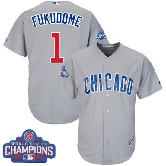 Youth Majestic Chicago Cubs #1 Kosuke Fukudome Authentic Grey Road 2016 World Series Champions Cool Base MLB Jersey