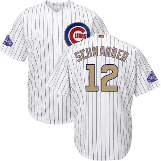 Home>MLB>Chicago Cubs>Kyle Schwarber>Youth Majestic Chicago Cubs #12 Kyle Schwarber Authentic White 2017 Gold Program Cool Base MLB Jersey