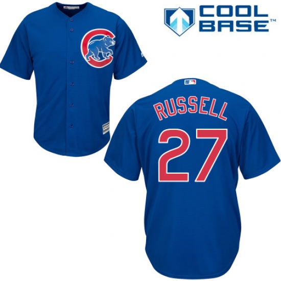 Home>MLB>Chicago Cubs>Addison Russell>Youth Majestic Chicago Cubs #27 Addison Russell Replica Royal Blue Alternate Cool Base MLB Jersey