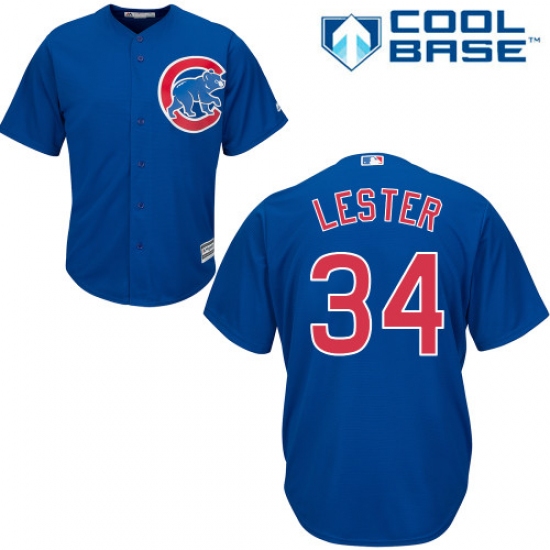 Youth Majestic Chicago Cubs #34 Jon Lester Authentic Royal Blue Alternate Cool Base MLB Jersey