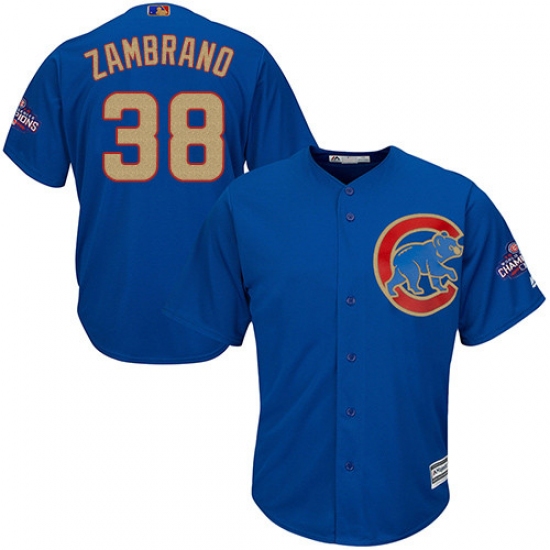 Home>MLB>Chicago Cubs>Carlos Zambrano>Youth Majestic Chicago Cubs #38 Carlos Zambrano Authentic Royal Blue 2017 Gold Champion Cool Base MLB Jersey
