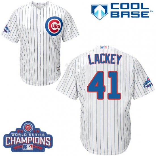 Home>MLB>Chicago Cubs>John Lackey>Youth Majestic Chicago Cubs #41 John Lackey Authentic White Home 2016 World Series Champions Cool Base MLB Jersey