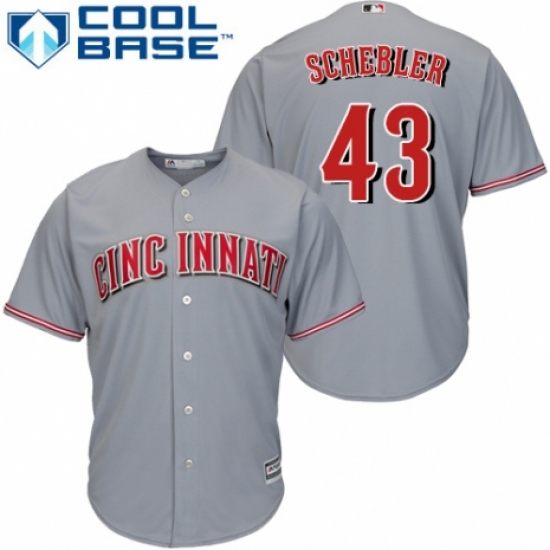 >Youth Majestic Cincinnati Reds #43 Scott Schebler Replica Grey Road Cool Base MLB Jersey