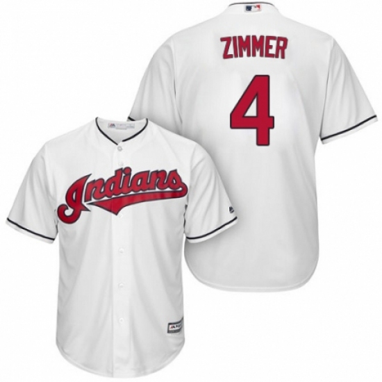 >Youth Majestic Cleveland Indians #4 Bradley Zimmer Authentic White Home Cool Base MLB Jersey
