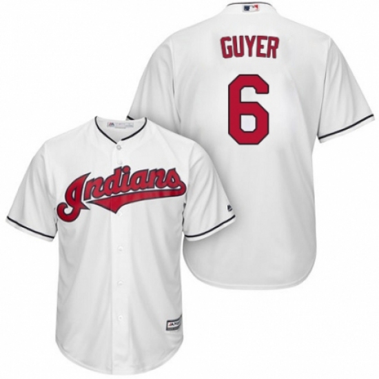 >Youth Majestic Cleveland Indians #6 Brandon Guyer Authentic White Home Cool Base MLB Jersey