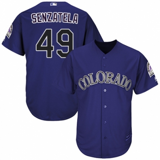 >Youth Majestic Colorado Rockies #49 Antonio Senzatela Replica Purple Alternate 1 Cool Base MLB Jersey
