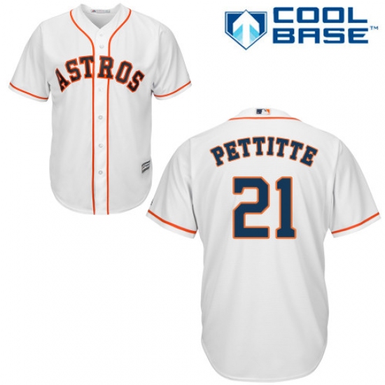 Home>MLB>Houston Astros>Andy Pettitte>Youth Majestic Houston Astros #21 Andy Pettitte Replica White Home Cool Base MLB Jersey