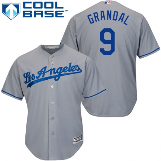 Home>MLB>Los Angeles Dodgers>Yasmani Grandal>Youth Majestic Los Angeles Dodgers #9 Yasmani Grandal Replica Grey Road Cool Base MLB Jersey