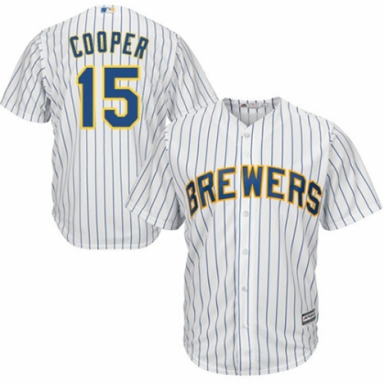 Youth Majestic Milwaukee Brewers #15 Cecil Cooper Replica White Home Cool Base MLB Jersey