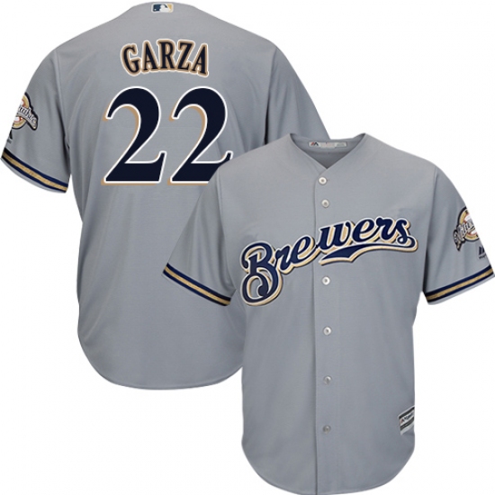 Youth Majestic Milwaukee Brewers #22 Matt Garza Replica Grey Road Cool Base MLB Jersey