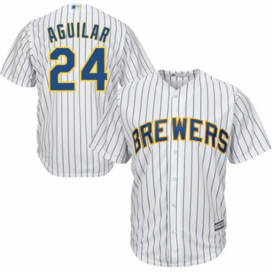 Youth Majestic Milwaukee Brewers #24 Jesus Aguilar Authentic White Home Cool Base MLB Jersey