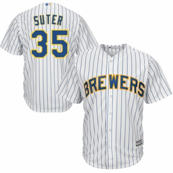>Youth Majestic Milwaukee Brewers #35 Brent Suter Authentic White Home Cool Base MLB Jersey