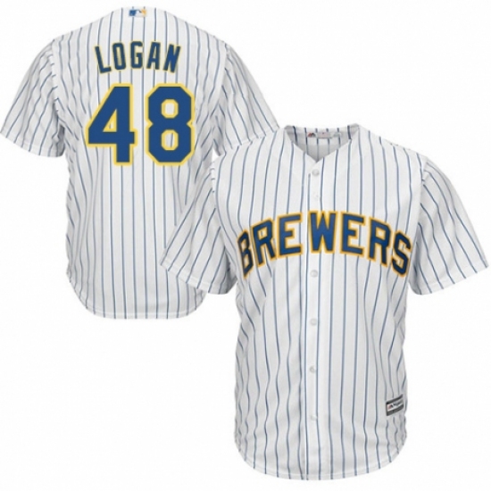 >Youth Majestic Milwaukee Brewers #48 Boone Logan Replica White Home Cool Base MLB Jersey