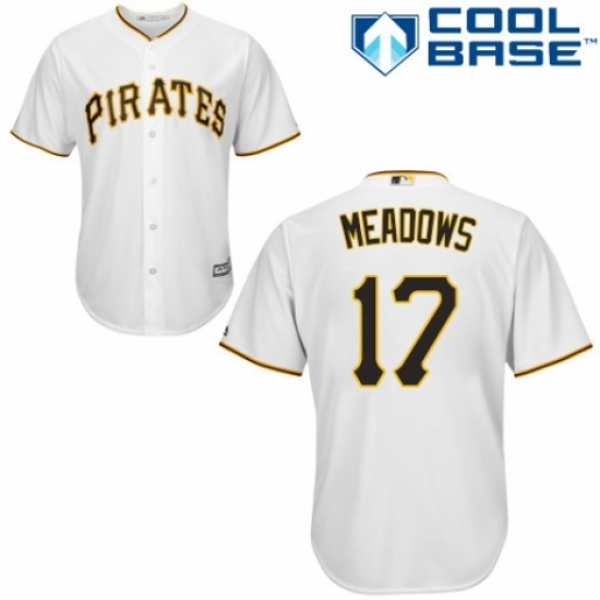 >Youth Majestic Pittsburgh Pirates #17 Austin Meadows Replica White Home Cool Base MLB Jersey