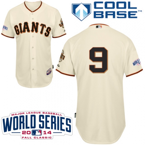 Home>MLB>San Francisco Giants>Brandon Belt>Youth Majestic San Francisco Giants #9 Brandon Belt Authentic Cream Home Cool Base 2014 World Series Patch MLB Jersey