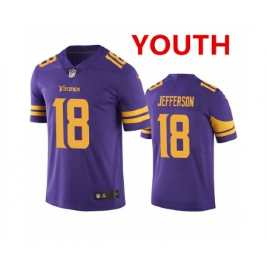 >Youth Minnesota Vikings #18 Justin Jefferson Purple Color Rush Limited Stitched Jersey