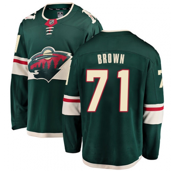 Men's Minnesota Wild #71 J T Brown Authentic Green Home Fanatics Branded Breakaway NHL Jersey