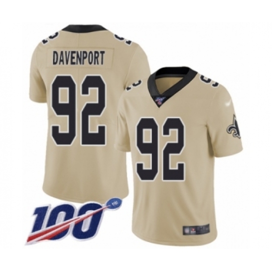 Men's New Orleans Saints #92 Marcus Davenport Limited Gold Inverted Legend 100th Season Football Jersey