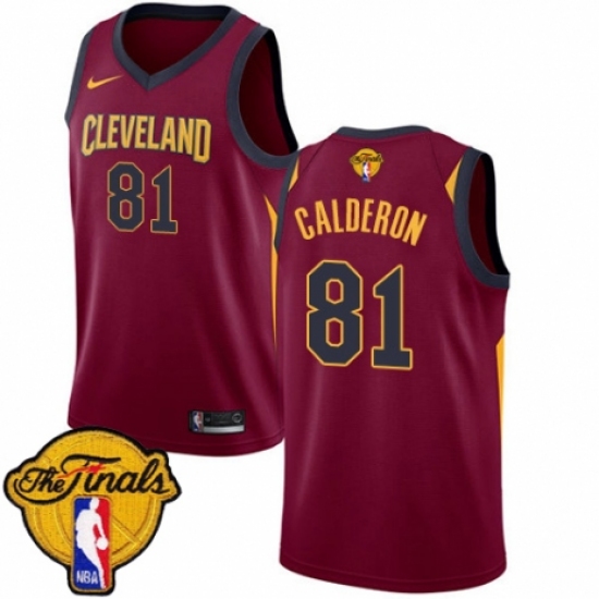 Men's Nike Cleveland Cavaliers #81 Jose Calderon Authentic Maroon 2018 NBA Finals Bound NBA Jersey - Icon Edition