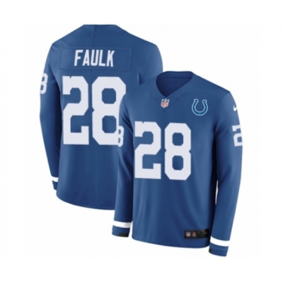 >Youth Nike Indianapolis Colts #28 Marshall Faulk Limited Blue Therma Long Sleeve NFL Jersey