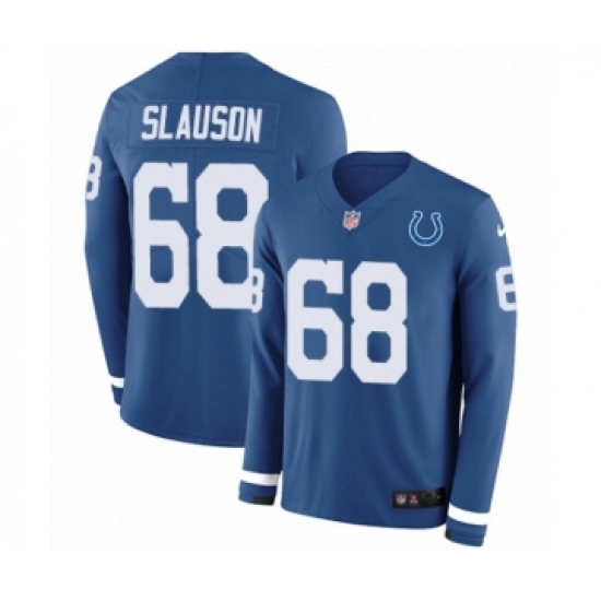 Youth Nike Indianapolis Colts #68 Matt Slauson Limited Blue Therma Long Sleeve NFL Jersey