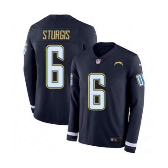 >Youth Nike Los Angeles Chargers #6 Caleb Sturgis Limited Navy Blue Therma Long Sleeve NFL Jersey