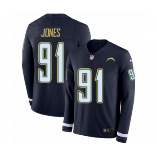 Youth Nike Los Angeles Chargers #91 Justin Jones Limited Navy Blue Therma Long Sleeve NFL Jersey