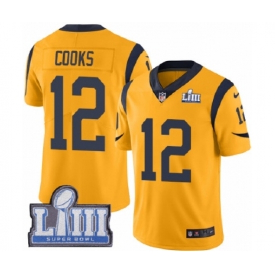 >Youth Nike Los Angeles Rams #12 Brandin Cooks Limited Gold Rush Vapor Untouchable Super Bowl LIII Bound NFL Jersey