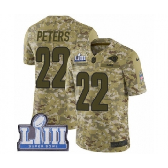 >Youth Nike Los Angeles Rams #22 Marcus Peters Limited Camo 2018 Salute to Service Super Bowl LIII Bound NFL Jersey
