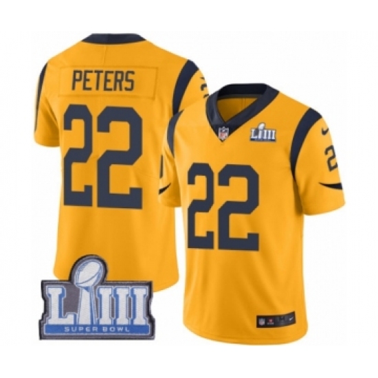 >Youth Nike Los Angeles Rams #22 Marcus Peters Limited Gold Rush Vapor Untouchable Super Bowl LIII Bound NFL Jersey