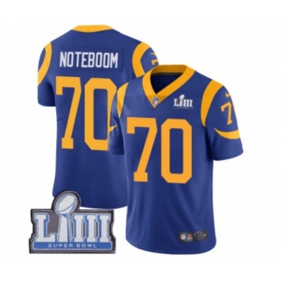 >Youth Nike Los Angeles Rams #70 Joseph Noteboom Royal Blue Alternate Vapor Untouchable Limited Player Super Bowl LIII Bound NFL Jersey