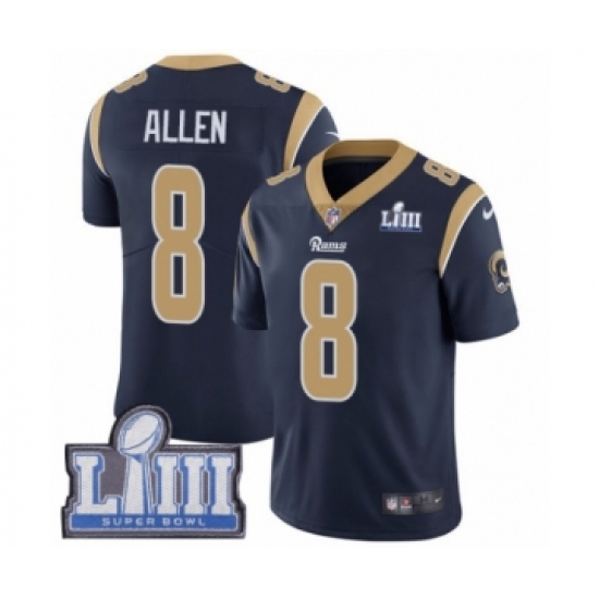 Youth Nike Los Angeles Rams #8 Brandon Allen Navy Blue Team Color Vapor Untouchable Limited Player Super Bowl LIII Bound NFL Jersey