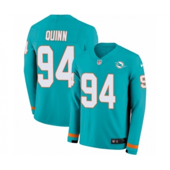 Men's Nike Miami Dolphins #94 Robert Quinn Limited Aqua Therma Long Sleeve NFL Jersey