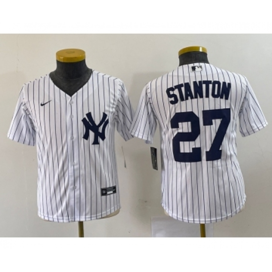 Youth Nike New York Yankees #27 Giancarlo Stanton White Stitched Cool Base Jersey