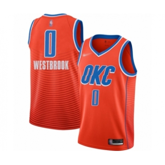Youth Oklahoma City Thunder #0 Russell Westbrook Swingman Orange Finished Basketball Jersey - Statement Edition