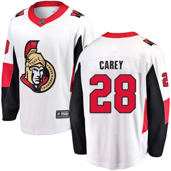 >Youth Ottawa Senators #28 Paul Carey Fanatics Branded White Away Breakaway NHL Jersey